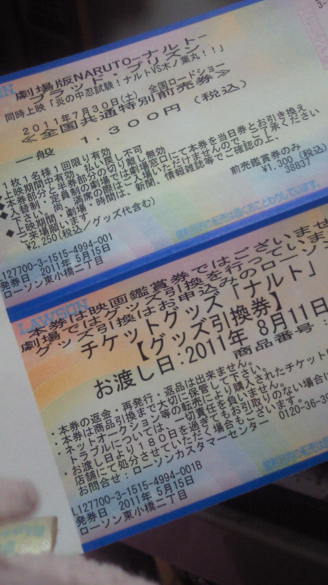 みんなーNARUTO前売り券かったかー(^O^)近所のローソンでかうのやで!